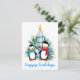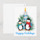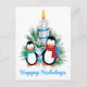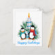 Cartão Postal De Festividades Pinguins e costume de Natal com vela