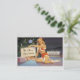 Cartão que caracteriza uma ilustração dos anos 50 do vintage de uma menina do pinup em um terno do papai noel. Retro esfrie!