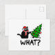 Cartão Postal De Festividades Presente de Gato Preto Engraçado Empurrando Árvore