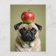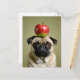 Cartão Postal De Festividades Pug Apple