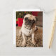 Cartão Postal De Festividades Pug sitting on carpet, Christmas tree
