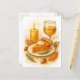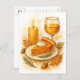 Celebrate the warmth and comfort of Thanksgiving with this charming watercolor postcard featuring a slice of pumpkin pie with whipped cream, a glass of apple cider, a glowing candle, and autumn leaves. Painted in a cozy sketch-and-watercolor style, this design captures the peaceful joy of fall gatherings, family traditions, and seasonal treats.