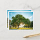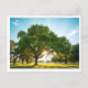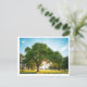 Holiday postcard with a calm green field and big tree artwork on the front.