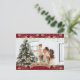 Cartão-postal vermelho elegante de Natal com ouro, sagrado e bagas. Personalize facilmente este cartão-postal cristão de Natal com a sua fotografia, o nome da família e a mensagem pessoal. O vermelho e o dourado, o cartão postal de Natal.