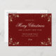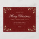 Cartão-postal vermelho e dourado, elegante, com neve, cola e bagas em fundo vermelho. Personalize facilmente este cartão postal de feriado online.
