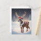 Cartão Postal De Festividades Reindeer Vestindo um Chapéu Santa