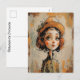 Cartão Postal De Festividades Retrato Caprichoso de Menina de Olhos Grandes Senh