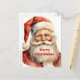 Cartão postal de Natal com uma ilustração fofa com estilo retrô. Papai Noel com uma barba branca e arbusta vestindo seu terno vermelho tradicional.