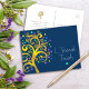 “L' Shanah Tovah.” Uma árvore gráfica em folha dourada com estrelas de David brilhantes em turquesa, azul-marinho, roxo e azul e “folhas” de pontos num fundo azul-marinho escuro, vai ajudar a saudar as festividades do Ano Novo Judaico, Rosh Hashanah. No verso, escreva a sua mensagem pessoal usando o modelo fácil fornecido ou apague-o completamente para uma nota manuscrita. Sinta a alegria e o calor da época de festas sempre que enviar este cartão-postal moderno, deslumbrante e brilhante. Envie isto para alguém especial!