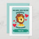Cartão fofo do Dia dos Namorados para crianças com uma ilustração de um leão e as palavras "Não Leão, você é meu namorado favorito!"