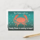 É melhor você ficar esperto... Sandy Claws está chegando à cidade! Caranguejo de Natal em Turquesa com Cartões Postais de Texto de Tipografia Personalizada.