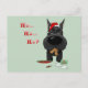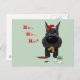 Schnauzer tentando se safar comendo todos os biscoitos de Papai noel. Schnauzer está vestindo um Papai Noel, com pão de gengibre na boca. A legenda diz: "Ho... Ho... Ho???".
