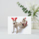 Cartão Postal De Festividades schnoodle branco em pé com natal vermelho