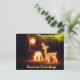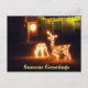 Sessões Saudações Feliz Cartão de Posto de Vestidos de Natal com Luzes de Natal de Deer iluminadas e um Chifre de Natal brilhante na porta da frente. Posto de Natal Festivo Cartão para empresários ou amigos celebrarem o Natal.