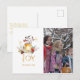 Cartão de cumprimentos de temporada de Natal em aquarela com pinheiro rústico coberto de neve e flocos de neve dourados e tipografia elegante personalizável com sua própria foto. Envie votos calorosos de Natal com este cartão de foto lindamente projetado, apresentando uma moldura floral em aquarela com pinheiro rústico coberto de neve. Perfeito para compartilhar seus momentos favoritos de Natal, este cartão traz um toque festivo e elegante para os seus cumprimentos de Natal. Ideal para a temporada de inverno, os elementos naturais e as fotos personalizadas tornam-no um presente memorável para familiares e amigos.