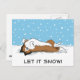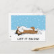Cartão-postal da Sheltie Holiday. "Deixe-o nevar!" O texto pode ser personalizado com sua própria mensagem. Desenho bonito de um Shetland Sheepdog rolando na neve com flocos de neve descendo. Um cartão postal de Natal perfeito para serviços de animais de estimação para personalizar e enviar a clientes, amigos e clientes. Excelente para veterinários, babás de estimação e ambulantes de cães. Visite o Doodle World de Jenn para obter ainda mais produtos com este design de cão feliz, assim como mais cartões e presentes de Natal de raça canina.
