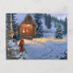 Cartão Postal De Festividades Snow Cabin With Christmas Birds