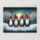 Esta elegante design de Natal apresenta quatro pinguins bonitos vestindo um chapéu de Papai Noel em uma noite de inverno de neve.
