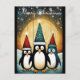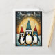 Cartão Postal De Festividades String Light Moon Papais noeis Pinguim Natal