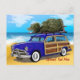 Cartão Postal De Festividades Surfing Woodie with Christmas Tree