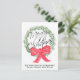 Este simples cartão postal é uma forma excelente de enviar cartões de natal. Apresenta uma coroa impermeável, pintada a aquarela, de ramos de pinheiro e bagas com um grande arco vermelho. A legenda diz: Feliz Natal! Há espaço para uma breve saudação e assinatura. Elegante e subestimado.