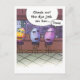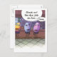 Três fêmeas de ovos de Páscoa sentadas em um bar verificando a competição. Dois ovos claramente coloridos estão olhando para o terceiro que decorou com cores brilhantes. O ovo azul diz, "Olhe para o trabalho de tingimento nela." O ovo rosa diz: "Tramp!" O cartão é vazio para você adicionar sua própria mensagem, se desejar.