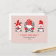 Três gnomos engraçados da tradição popular nórdica adornam estes cartões festivos e de Natal em tons vermelhos e cinzas contra um fundo rosa claro.