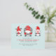 Esta comemoração de Natal Virtual para aqueles tempos em que não é possível estar juntos pessoalmente é decorada por três Gnomos Engraçados da Tradição Folclórica Nórdica. O gnomo à esquerda veste um clássico Chapéu Escandinavo com galhos de renas e segura sinos vermelhos, o gnomo no centro veste um chapéu listrado vermelho e branco e sua cabeça é enfeitiçada por um clássico Jardim de Natal com bauble branco, o Gnomo à direita tem um belo chapéu de Papai Noel e traz um belo presente. "Virtual Christmas Party" (Partido de Natal Virtual) aparece abaixo em letras vermelhas no serif, com os detalhes de sua festa, e link para conectar-se no tipo clássico de cinza. Personalize a parte traseira com uma mensagem personalizada, se desejar.