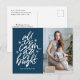 Cartaz elegante, de feriado moderno, com a frase "Tudo está calmo, tudo está brilhante" em um roteiro branco, manchado, com sotaques de estrelas contra um fundo azul marinho. Personalize a parte frontal do cartão postal de feriado, com a inscrição do seu nome e foto favorita. A parte traseira do cartão postal de feriado exibe o endereço de devolução e a mensagem personalizada.