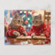 Cartão Postal De Festividades Two cats in red sweaters with festive background