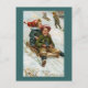 Belo cartão de natais vintages mostrando duas crianças deslizando por um declive de neve em seu trenó. Outras crianças estão brincando no fundo.
