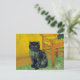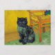 Poscard com um gato preto no estilo de Van Gogh! Esta gatinho preta senta-se sobre um chão verde sobre um fundo de decoração da Noite Estrelada. Um presente fabuloso para amantes de gatos e colecionadores de arte holandeses!