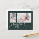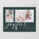 Moderno 2 Foto Joyful Script Christmas Dark Green. Basta substituir as duas fotos de exemplo por suas próprias e personalizar com seus nomes. Joyful está em um script de jogo de na moda, em branco, que pode ser alterado para outra cor, se você desejar.