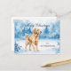 Celebrate the magic of the season with this beautiful watercolor Golden Retriever holiday post card, featuring a loyal pup surrounded by a serene snowy woodland backdrop. Soft watercolor tones and a gentle flurry of snow create a heartwarming winter scene that captures the spirit of the holidays — and the love of your furry friend.