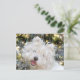 White West Highland terrier ou Westie coloca seu sorriso feliz e se posiciona em frente ao cachorro da árvore de Natal ama o cartão postal de Natal