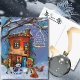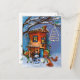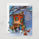 Cartão Postal De Festividades Whimsical House and Winter Woodland Friends