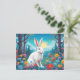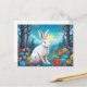 Cartão Postal De Festividades White Rabbit with Forest Flowers Nature