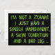 Onde quer que você vá, as pessoas lhe dizem, "Você parece um zumbi." E isso é ruim porque se os mortos-vivos realmente dominarem o planeta, você será confundido com um deles. Mas não se você estiver exibindo esta design de salvação. Ele explica a verdade para qualquer caçador de zumbis: Eu não sou um Zombie. Eu só tenho um Impedimento de Fala, uma Condição Cutânea e uma Perna Má. O texto é verde-malhado, como carne de zumbi, e o fundo é preto. Esteja preparado quando o surto ocorrer. Veja em mais produtos sob o "Halloween" em nossa loja.