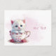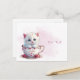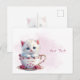 Cartão postal de filhote de gato em xícara com flo
