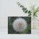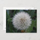 Este adorável cartão postal floral apresenta uma bela fotografia de uma flor de dente-de-leão germinando. A fotografia foi tirada usando macrofotografia para um resultado detalhado. Você pode ver todas as sementes brancas e fofas individuais prontas para serem levadas pelo vento.