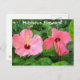 Cartão postal com um par de lindas flores de hibisco rosa em Freeport, Bahamas da minha viagem