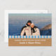 Cartão postal de foto de férias com listras rústicas doce e moderno, apresentando uma borda de listras azul, cinza e branco e um fundo de textura de madeira rústica falsa. Este cartão colorido, porém simples, é perfeito para desejar calorosas saudações de férias às pessoas. Fácil de personalizar, substitua a foto por uma sua e adicione o texto personalizado que desejar.