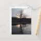 Essa bela imagem mostra uma árvore do outro lado de um pequeno lago silenciado contra o pôr do sol com seu reflexo espelhado na água abaixo.