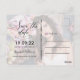 Postais modernos de save the date de aniversário de 16 anos com flores. Design com tipografia e número 16 em fólio de ouro rosa. Personalize com sua foto e detalhes no verso.