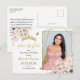 Cartão Postal de Foto da Quinceañera com Tiara Rosa e Dourado