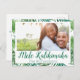 Folhas verdes tropicais bordam sua foto. Abaixo da sua imagem está o texto desejando aos seus amigos e familiares Mele Kalikimaka, em havaiano "Feliz Natal". O nome da sua família é impresso abaixo da saudação de Natal. O texto é impresso com duas fontes coordenadas em verde de Natal. Uma simples saudação de Natal é impressa no verso do cartão postal junto com seus nomes. O texto é impresso com uma fonte verde de Natal. Para enfeitar o cartão postal acima da linha de endereço há um texto em itálico direcionando ao Sr. Carteiro Por Favor Entregue Para: com espaço abaixo para o endereço manuscrito.
