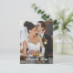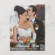 Cartão postal de foto do noivo e da noiva agradecendo o casamento com escrita branca longa