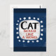 Um design de animal tipográfico irreverente e fofo que diz "Gato Quer uma Palavra". Ele apresenta texto preto e vermelho em um retângulo branco com pontos brancos divertidos ao redor, tudo em um fundo azul.
