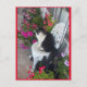 Cartão postal de gato Tuxedo fofo com flores bonit