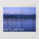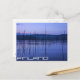 Cartão postal de lago de verão sereno e enevoado na Finlândia após tempestade de chuva forte no final da tarde durante a hora azul